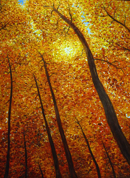 autumn leaves. This is a 30 x 36 canvas, the largest I had painted, and with the thickness of the oil paint I used to get relief, took well over a year to properly dry. |